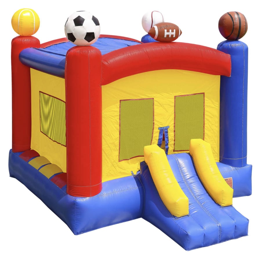 This bounce house is perfect for sports lovers of all ages. Includes a basketball goal inside to challenge your teammates. Bring your fans and make your party the Super Bowl of parties!