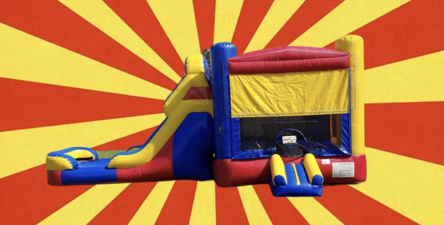 Our bright and primary colored Module Combo is the best bang for your buck. It has it all! With a large jump area, basketball goal and large oversized slide this unit is sure to be a crowd pleaser of all ages.